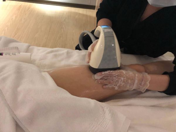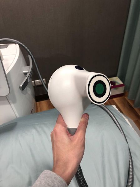 操作的探頭真的很像標靶,醫師超做的過程也會很詳細的跟你解說,主要是把聚焦超音波傳導脂肪層中,進而破壞脂肪細胞,但不會影嚮周圍的組織及血管。